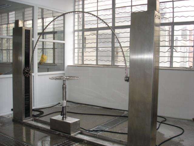 擺管淋雨試驗(yàn)箱為大型敞開式設(shè)備,需安裝在特設(shè)的實(shí)驗(yàn)室內(nèi)對(duì)產(chǎn)品進(jìn)行人工模擬淋雨試驗(yàn),設(shè)備可以用來考核和確定電工、電子產(chǎn)品外殼和密封件在水試驗(yàn)后或在試驗(yàn)期間能否保證設(shè)備和元件良好的工作性能。設(shè)備能完全模擬外界淋雨環(huán)境,充分再現(xiàn)外界淋雨環(huán)境對(duì)產(chǎn)品所造成的影響。